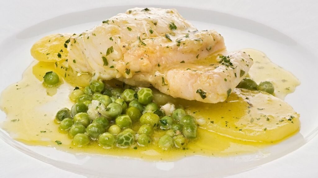 🐟 Lomo de merluza asado en salsa verde con guisantes